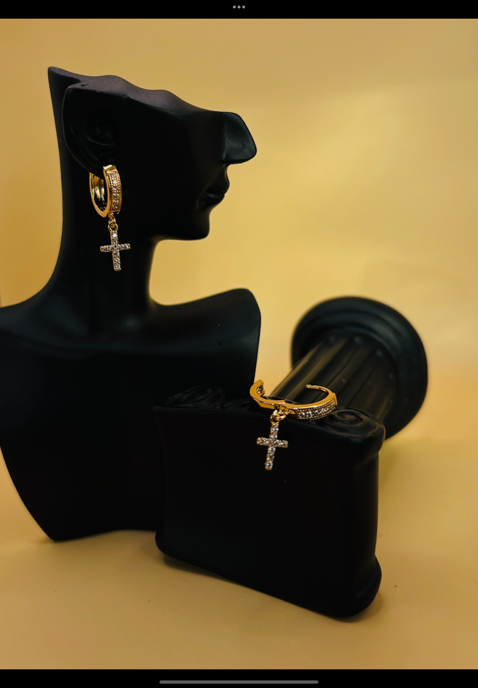 Une paire de boucles d’oreilles discrète mais symbolique, avec un pendentif en forme de croix suspendu à un anneau finement serti de cristaux. Idéales pour un style élégant et intemporel, parfait pour le quotidien. Finition dorée avec zirconiums éclatants, fermeture confortable. |